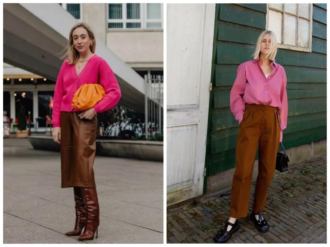 粉棕怎么穿?里面大有讲究。若两个色饱和度都高,对比强烈,便不好驾驭。玫粉+深棕,不小心就是死亡配色...