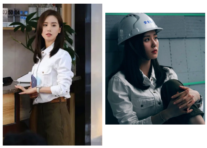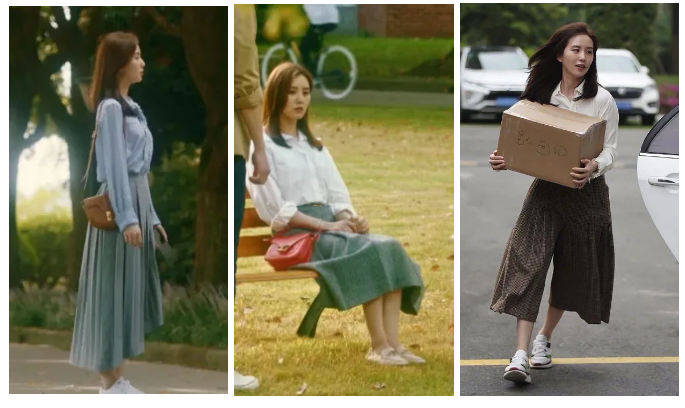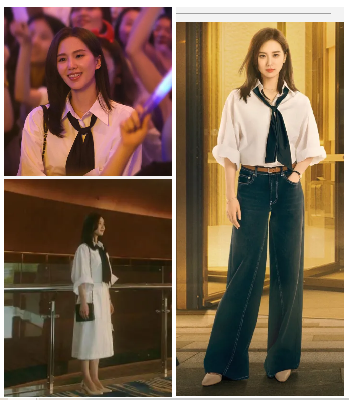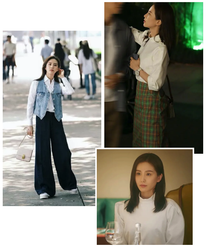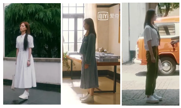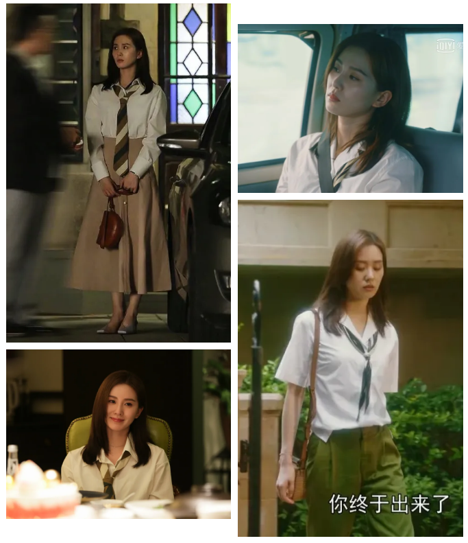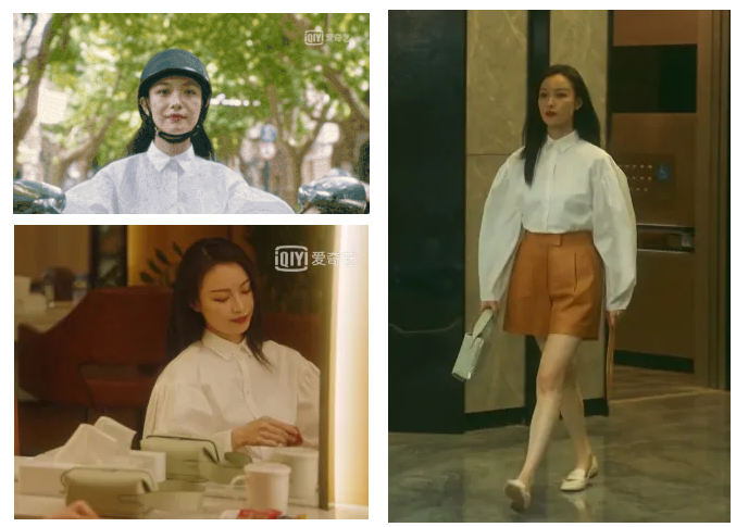 前半段我们提到了蒋南孙爱穿白色,除了白裙子,整出剧她穿最多的就属白衬衫。