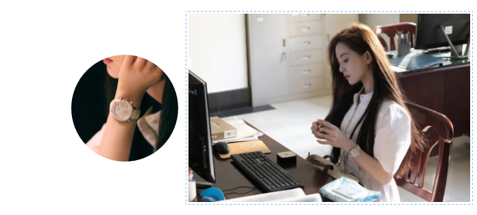 这只小表盘、黑色表带,更精致、更女性化,平时穿柔美裙子或白衬衫时,就会戴它: