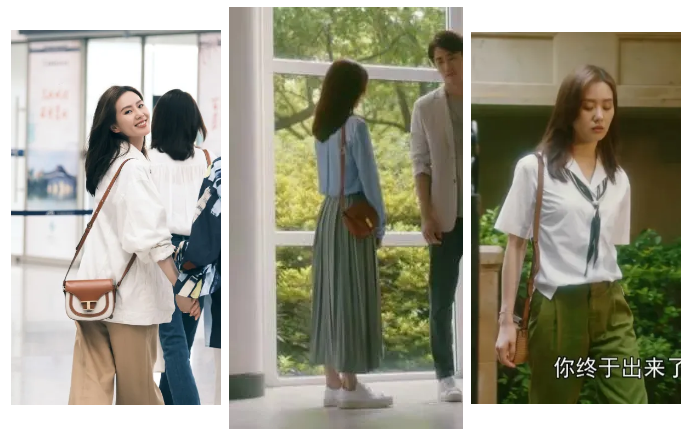 南孙从穿搭到配饰都在追求舒适自然,她更爱大小适中,同时还能解放双手的斜挎包。尤其是棕色系的,百搭又不抢眼,完全是蒋南孙的菜。