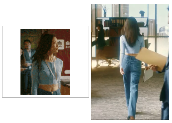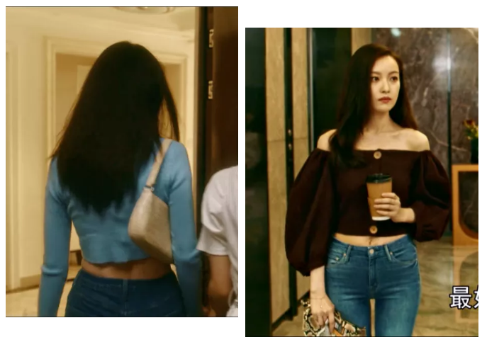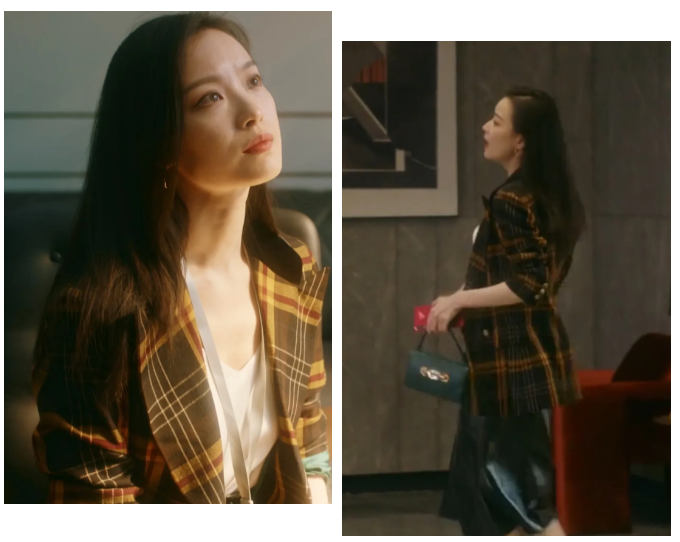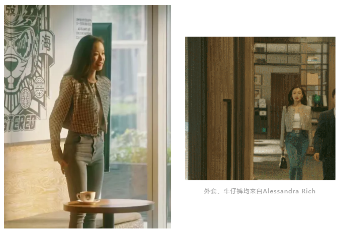 比如朱锁锁入职那天穿的千鸟格短外套,小垫肩设计看着人好精神。她搭了条紧身牛仔裤,既秀了身材,又不失干练。