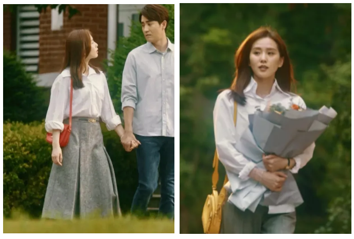 除此之外,还有我们前文提到过的丝巾。这种优雅属性的配件,在南孙身上出现都很合理。