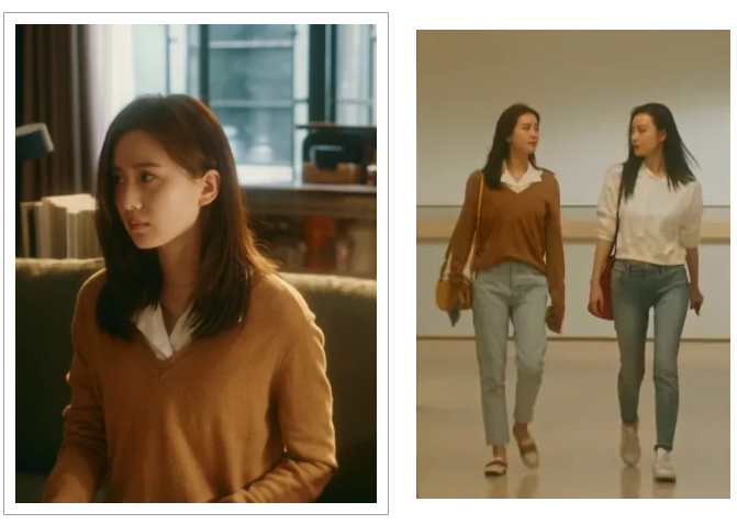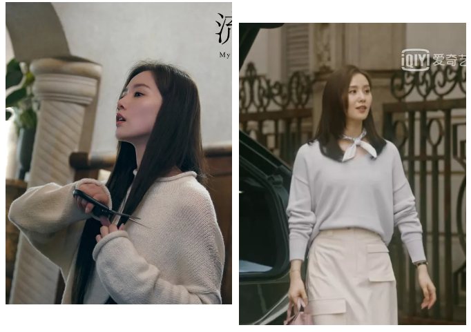 蒋南孙跟闺蜜一样喜欢穿针织衫,但不同于朱锁锁爱穿紧身上衣,南孙的针织衫大多都是宽松、舒适的版型。这很符合她淡然的性格。