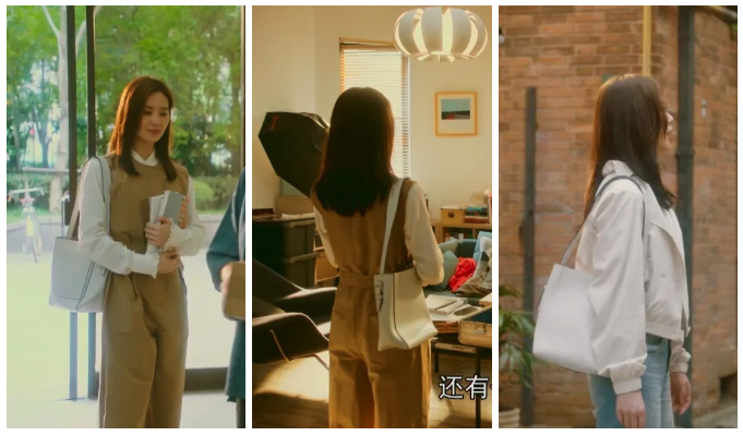 但是下工地时,她大部分都是能装、实用的大水桶包。闺蜜那只Valextra Bucket她也有一只,是白色的。搭过工装连体裤和白色外套: