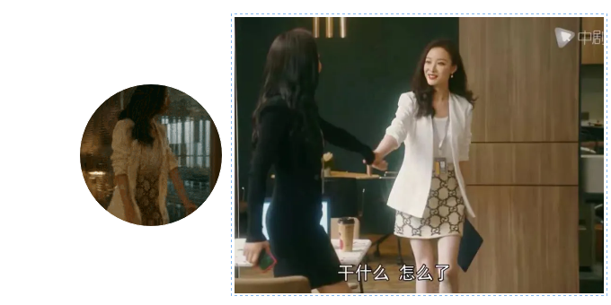 去工地“拍画报”那回呢,锁锁以为是单纯的跟客户碰面,穿了厉害的垫肩西装裙,脚上也换了更犀利的拼接高跟鞋,气焰嚣张~~