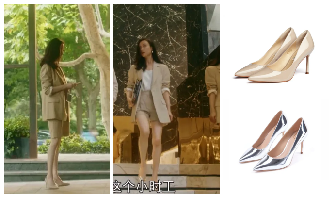 工作后,她也换成了更简单大方的尖头细高跟。这也是大多数女生在出入职场时会做出的转变,毕竟这样的鞋型看着专业性会更强。