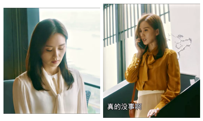 包括配套的衬衫本身,也不再是以前那种偏学院的棉质感,而是开始增加垂感,甚至是飘带细节,逐渐向成熟女人味转变。