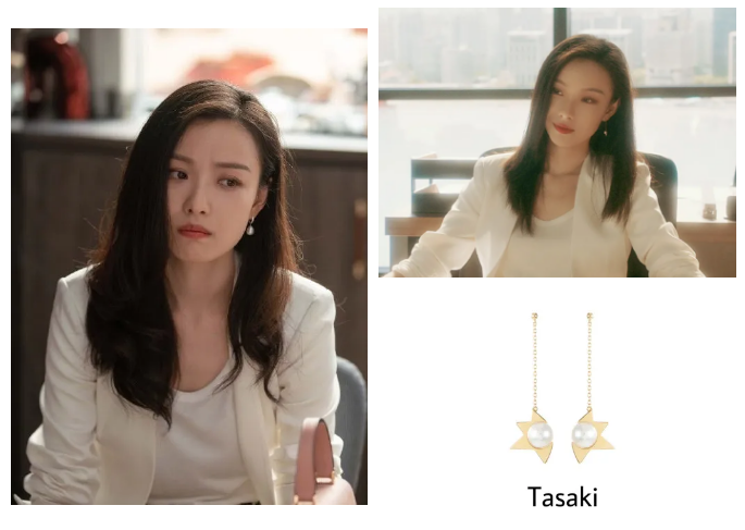 或是小巧的吊坠款。她穿过两次的白色西装,分别搭了水滴形珍珠耳坠和细长的珍珠耳线,都蛮精致的。耳线款来自Tasaki。