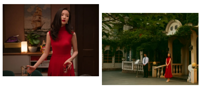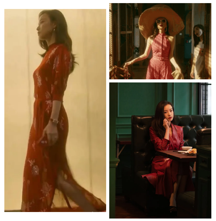 除了上面陪表哥赴宴和去面试时穿的这条Givenchy,后来为了帮南孙爸爸打探“军情”,又穿过一回大红裙。