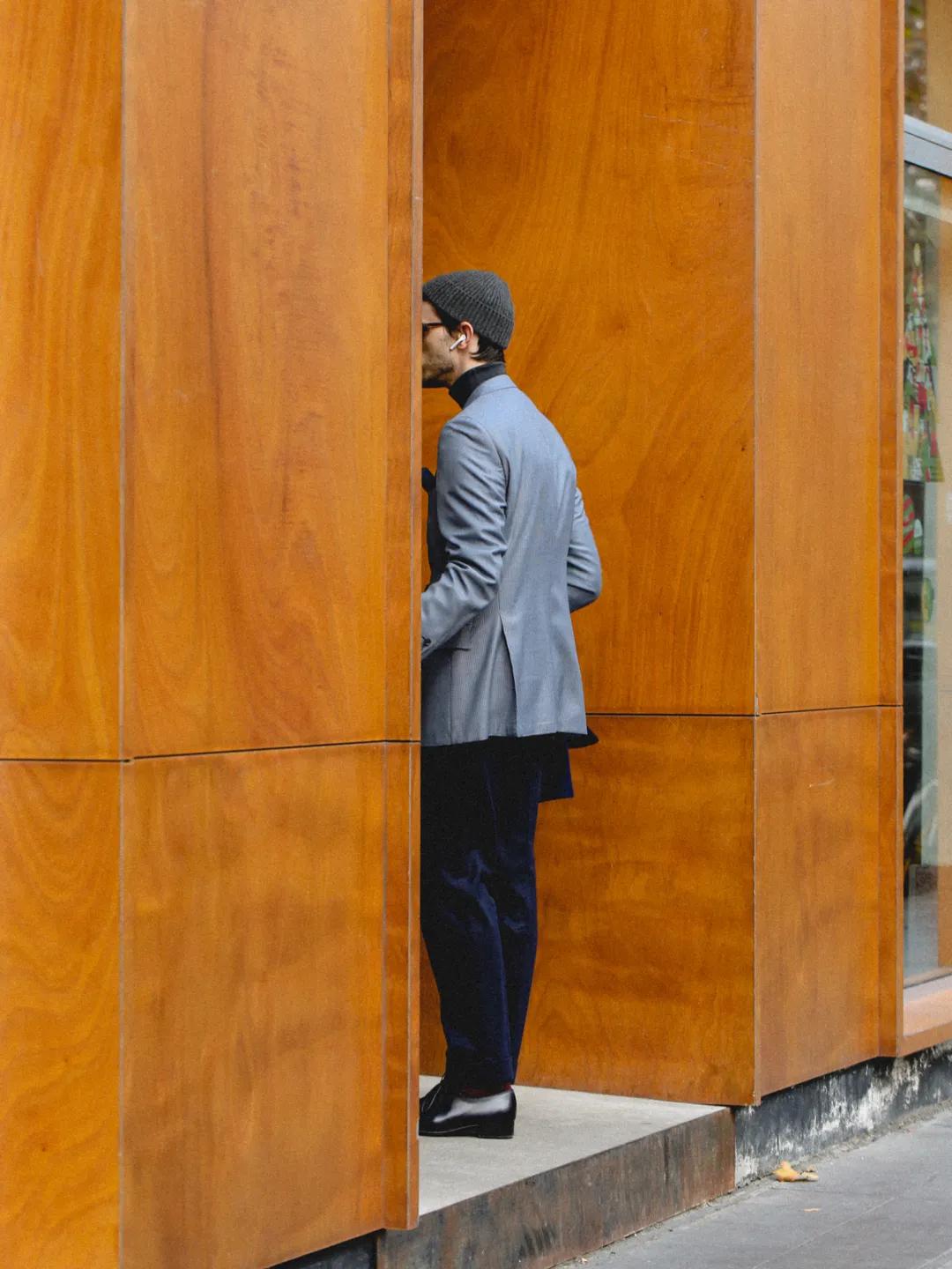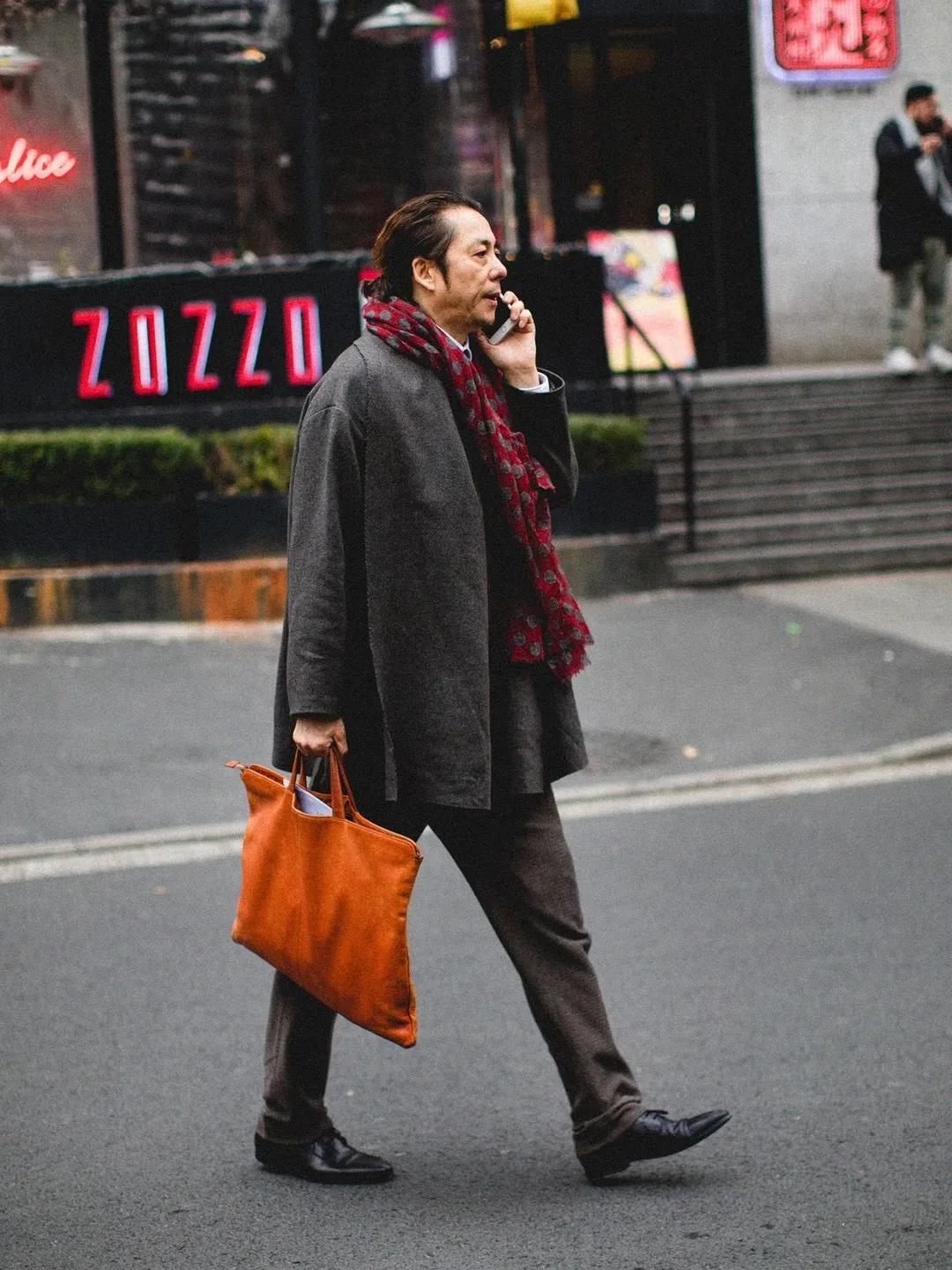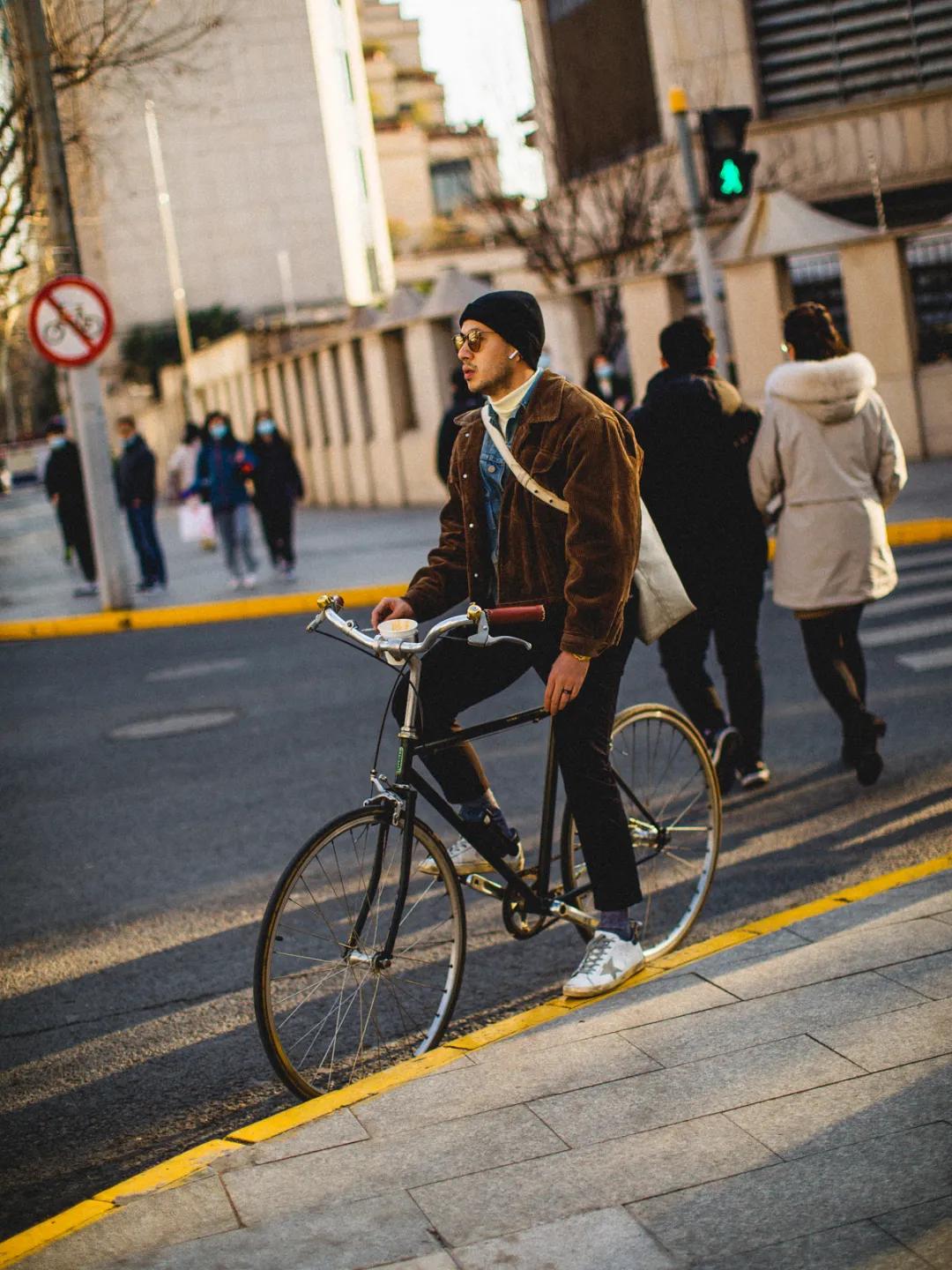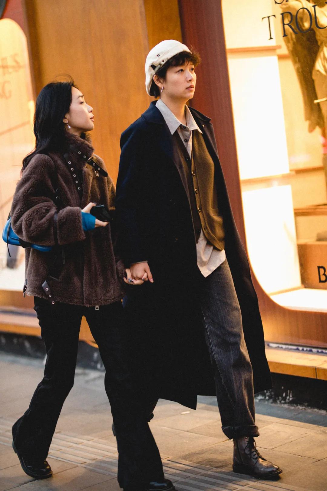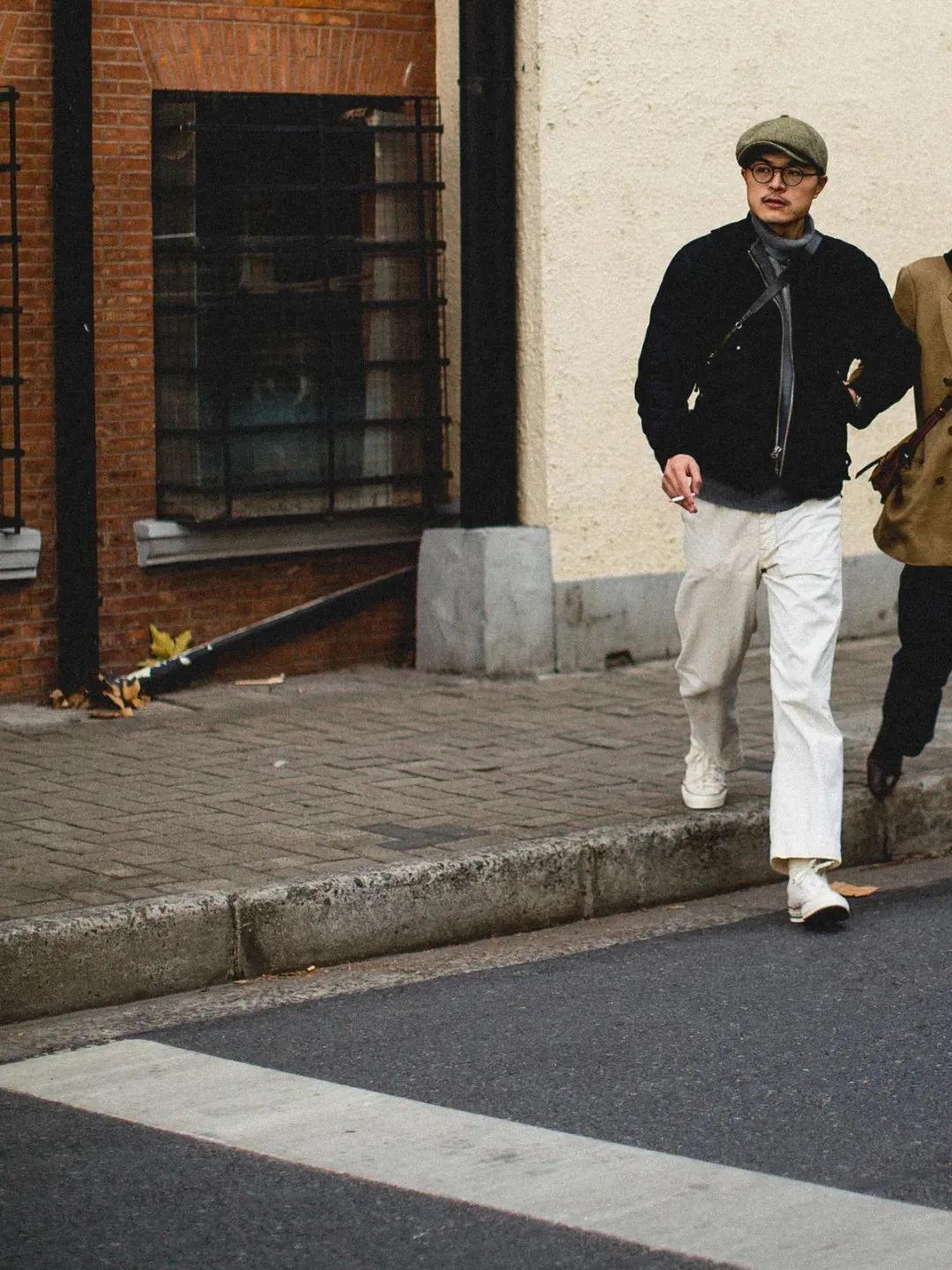 近期最喜欢的抓拍之一。绿色+卡其色,男生冬日标配。