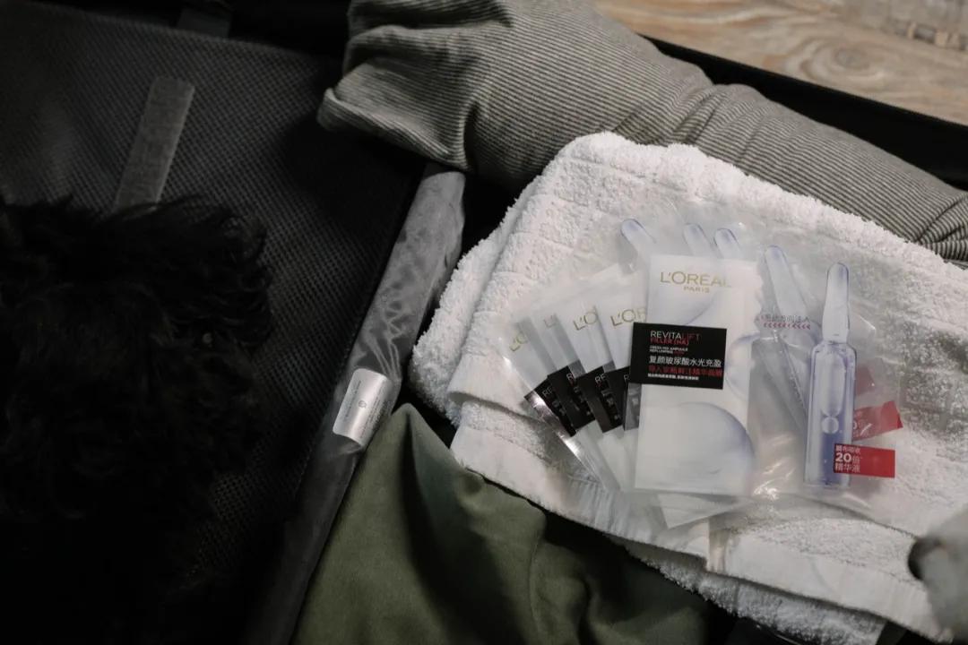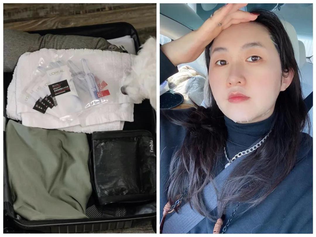 出差坐飞机或长途汽车旅行,姜女士都是安瓶面膜不离脸~
