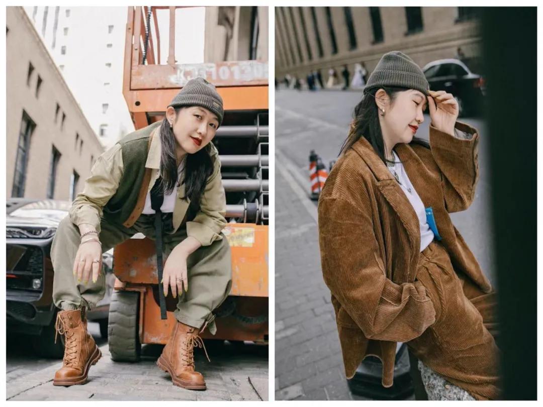 它也可以用来搭配灯芯绒和牛仔,有一种阿美咔叽美式休闲复古的腔调。右边两身个人很喜欢~姑娘们也可以这么穿。
