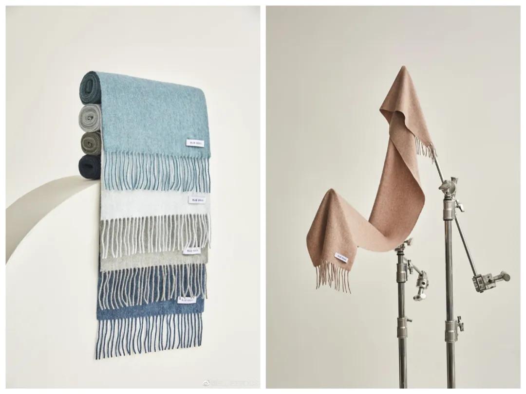 还有围巾,我已经相中这条啦!淡淡的baby blue,搭配all black、驼色系、灰色系、白色系都非常好看。冬季彩色穿的不多,从小配件入手刚好。