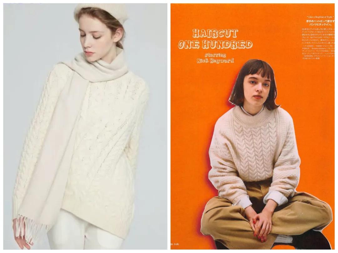 日杂《Fudge》里,常见灰色绞花针织+蓝衬衫搭配,用这件正合适。且因羊绒垂顺,轻薄却保暖,所以也是难得的大胸穿不显胖的绞花毛衣。