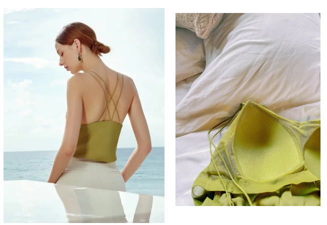 材质和肩带设计都很好看,没有钢圈,宅家、外穿又都舒适度满分。
