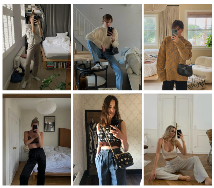 而其实时博们晒穿搭的工作也没有太耽误,只是在形式上有不小的变化——对镜自拍记录穿搭代替了到处游玩的街头拍摄。