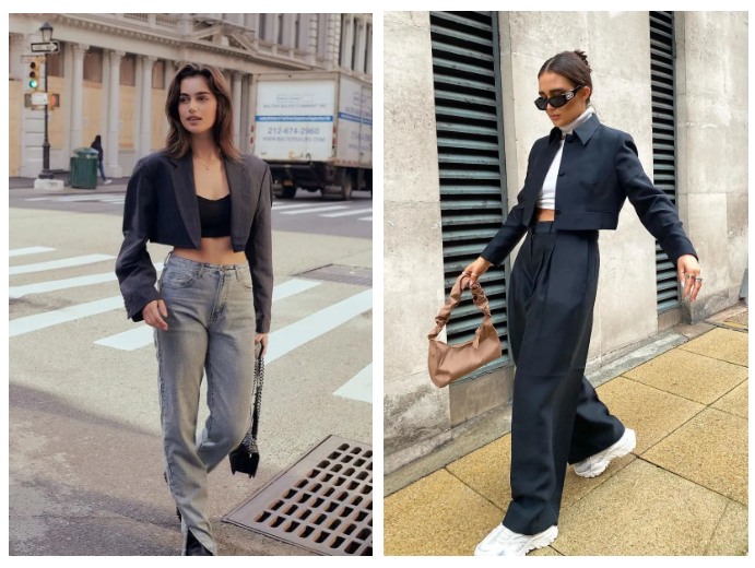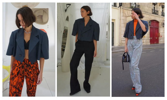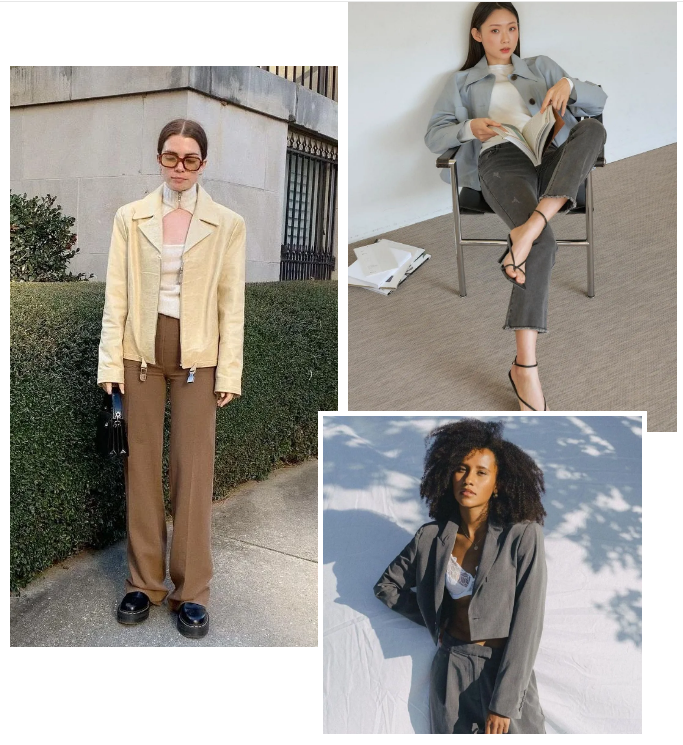 至于搭配,短夹克我还是建议搭裤装会更利落些。只要选择适合自己下半身的裤型,铅笔裤、锥形裤、阔腿裤都可。