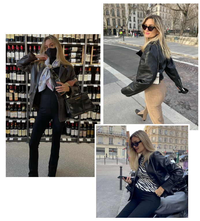 前两季受BV简约风影响,到处都是皮西装。而今年我发现皮夹克似乎回归了。巴黎设计师Anne-Laure Mais去年还在穿皮西装,今年就换成了夹克款: