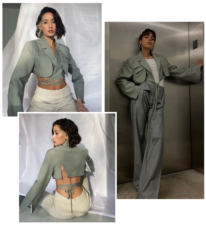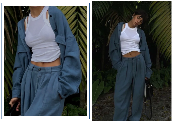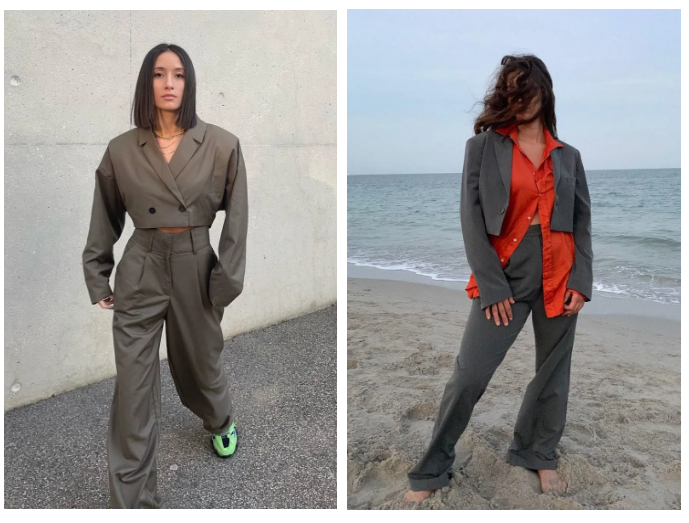 西装来自洛杉矶品牌PATCHWERK,价格不贵,98刀折合人民币600+。哥伦比亚博主Jen Ceballos也get了同款,搭的阔腿裤。