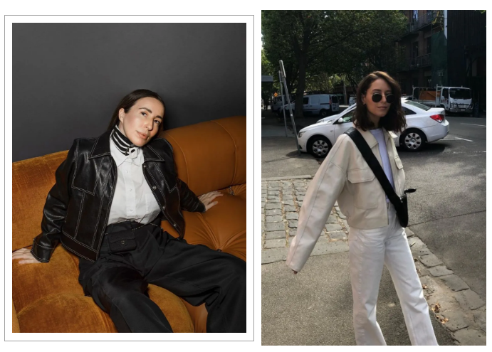两款夹克分别来自她自家品牌Musier和法国品牌Zalando
