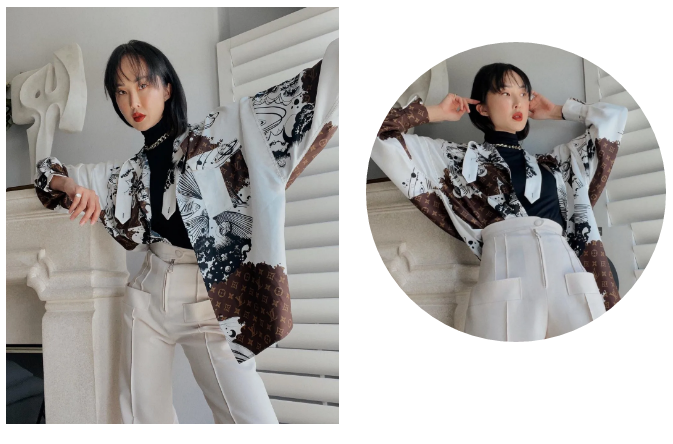 韩裔博主Chriselle Lim身上穿的LV把涂鸦和老花logo结合在一起,这种带图案的设计比纯色衬衫吸睛多了!
