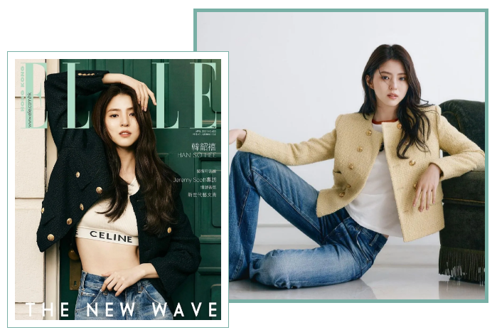 漂亮小妞韩素希在港版《ELLE》4月刊的封面上,也穿着利落的短外套,精神极了!