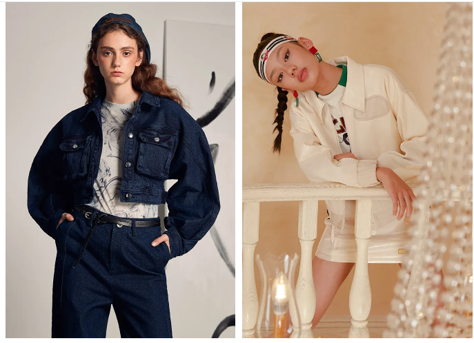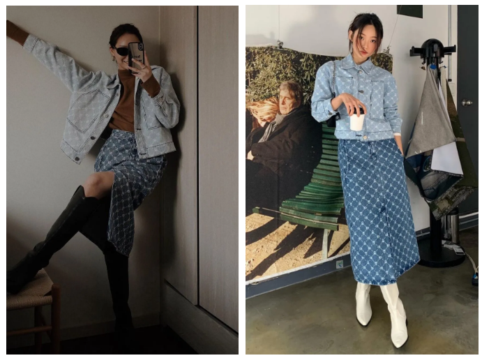 两位韩国博主Jellabee和Jiwon撞衫的这身牛仔套装也蛮好看的,来自韩国品牌Benetton。夹克裙子不同色,很有层次感。