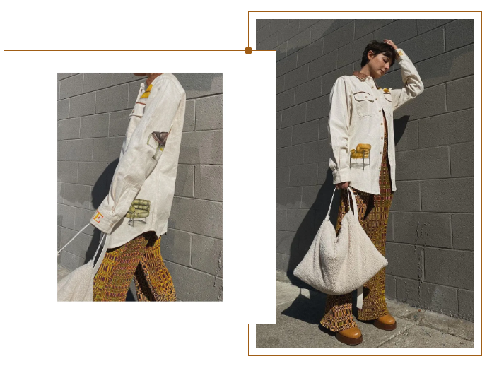 或者图案印花的也不错。Alyssa这件Rhee Studio的衬衫我好喜欢,上面是卡通家具印花,太特别了吧!