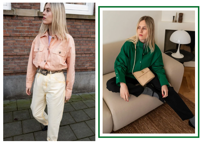 还有纽约博主Keri Fay和爱尔兰博主Orlaith Melia的棕色衬衫也很好看,风格更酷、更中性些。搭个高腰裤,轻轻松松就很时髦!