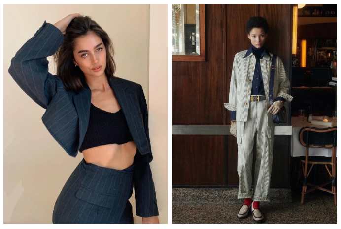 德国博主Leonie Hanne和法国博主Alexandra Guerain则都pick了短西装套裙。两人露的一手好腿,一个性感一个酷!前者套装来自Jacquemus~