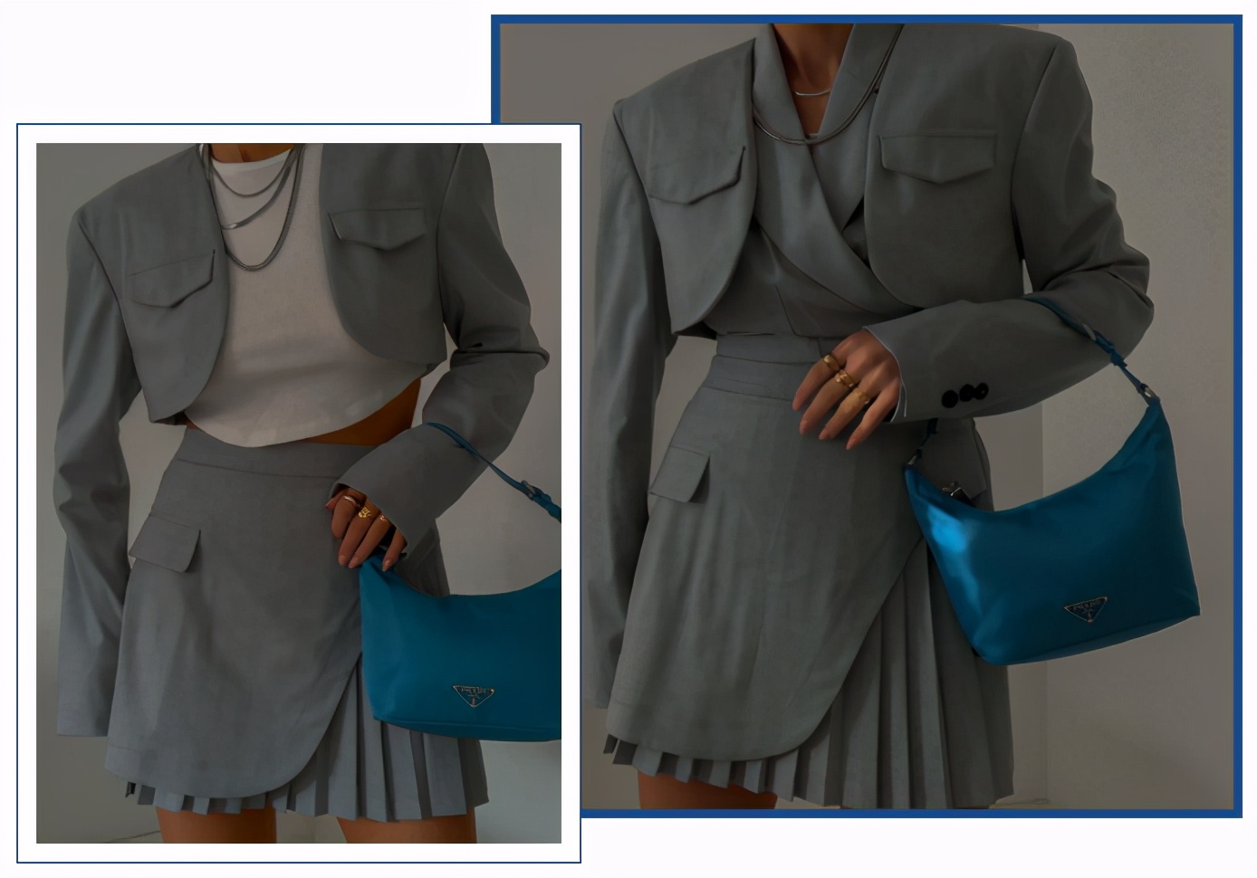 并不会!呐,时尚总监Tiffany Hsu和西班牙博主Paz Halabi就分别把短西装穿出了干练女boss和性感女人味的气质。