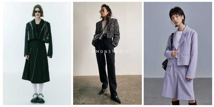 如果实在喜欢基础色,那我建议选择更oversize的版型,而且材质一定要有挺括感才能做出廓形来。太垂的面料适合做内搭或单穿,做外套效果会不好哦~