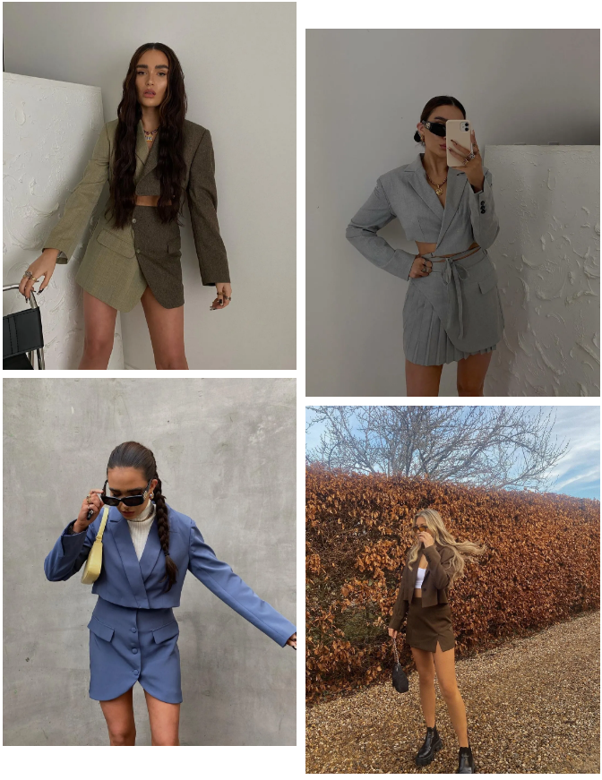 至于小个子女生,短西装最适合的人群就是你们啦!我推荐试试套裙,英国博主Alicia Roddy最近一个月也就穿了5678套吧: