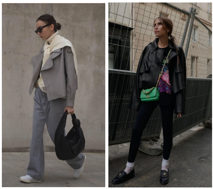 要说短外套,怎能少得了皮夹克呢。