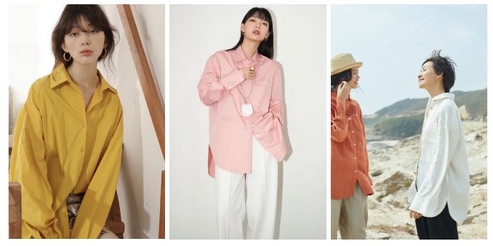 做外套的衬衫,我就不建议再选太基础的白衬衫了,多少有点单调。带点颜色会更好看,也更春天。