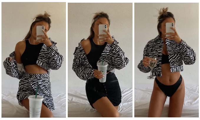 美国博主Lauren Crowe身上这套斑马纹的,她分别搭了套装、黑裙子和泳衣,超辣!套装来自伦敦姐妹花品牌Olivia & Alice,一套只要600+!