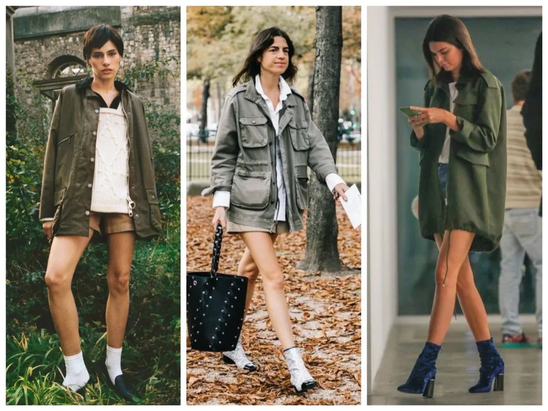 户外夹克+小白裤,是时装精挚爱的穿搭套路!素人(最右图)也能轻松驾驭。