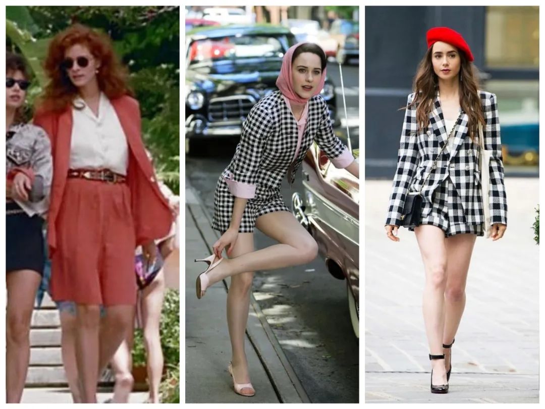 这也是众多影视剧在表现女主自信独立的特质时经常出现的造型。《风月俏佳人》里的茱莉亚·罗伯茨、麦瑟尔夫人、艾米丽都pick过。