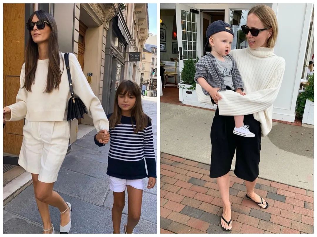 这两天翻到Leia Sfez和Elin Kling(Toteme主理人)的带娃外出私服,竟然不约而同选择针织衫+五分短裤?!当时瞬间被戳到,看上去好温柔好舒服~