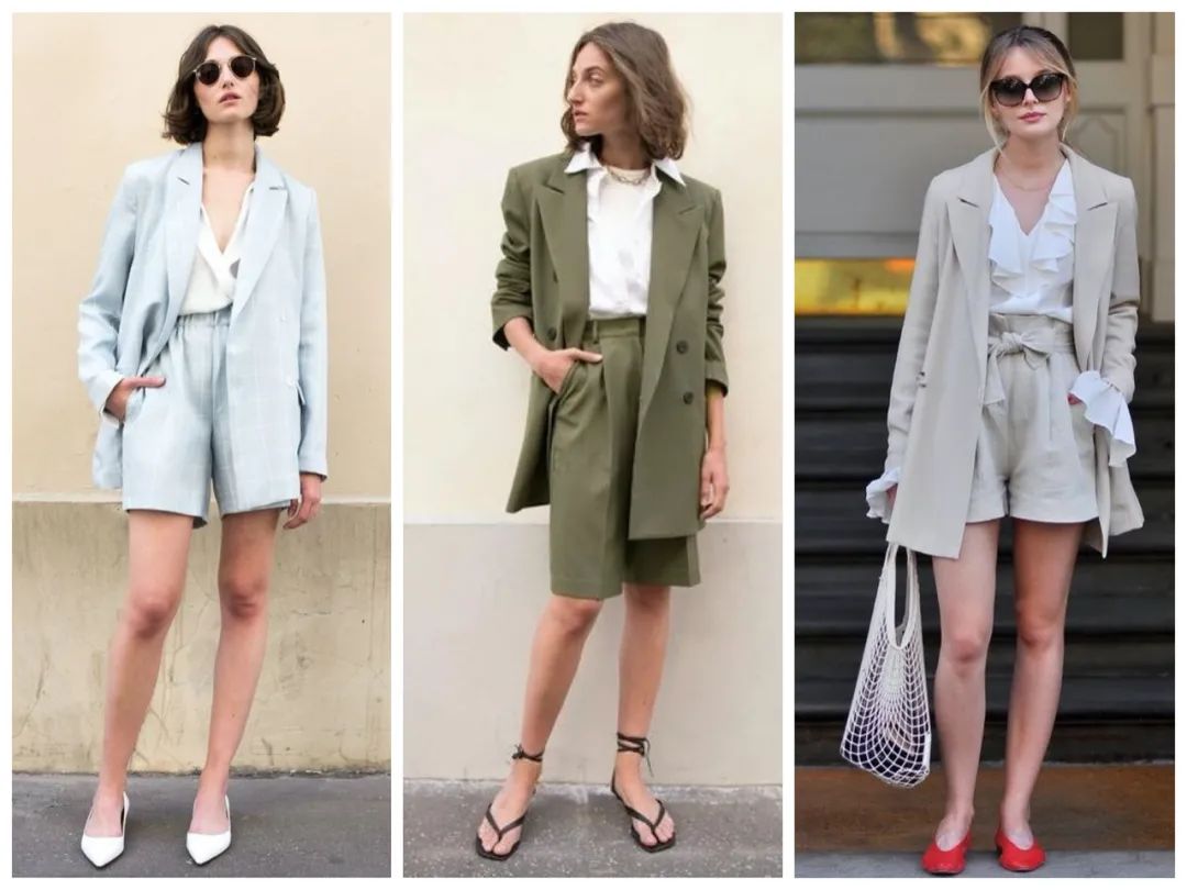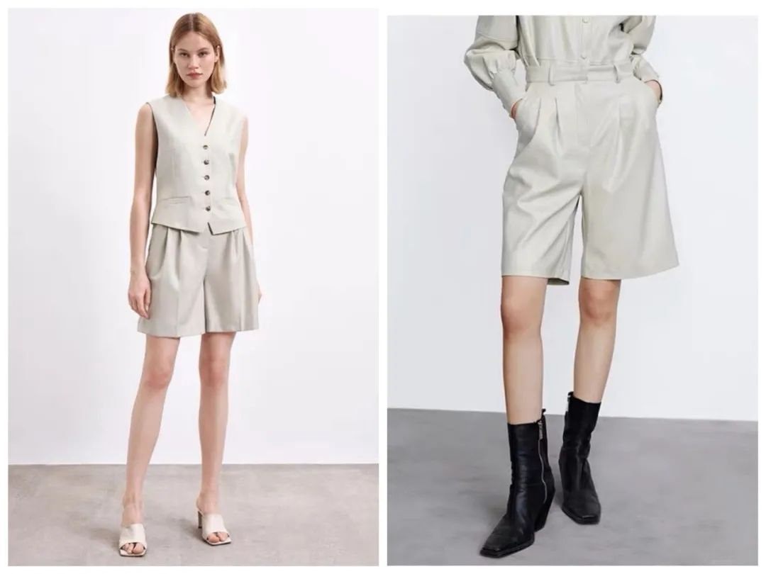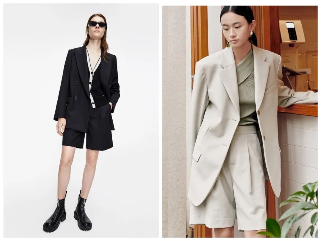 此外,不同面料风格也不同。最百搭的西装面料短裤,垂坠和硬挺的效果均可实现,选择适合自己的即可。