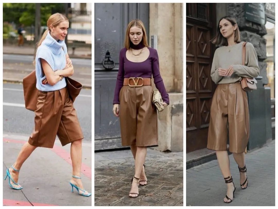 这条皮短裤,Pernille Teisbaek两次穿出街都搭配针织上衣。温柔与犀利碰撞,显得愈发自信从容。