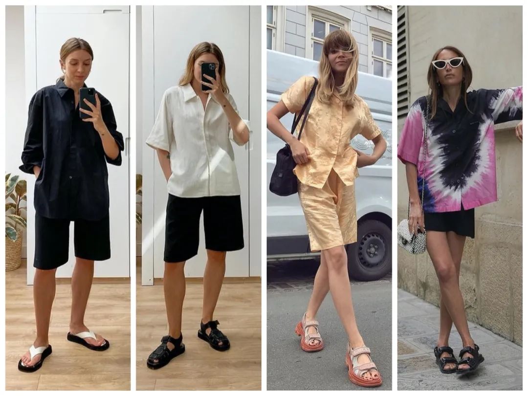 比如,宫廷风泡泡袖衬衫+五分短裤,随手一翻就找到一堆时装精在穿~