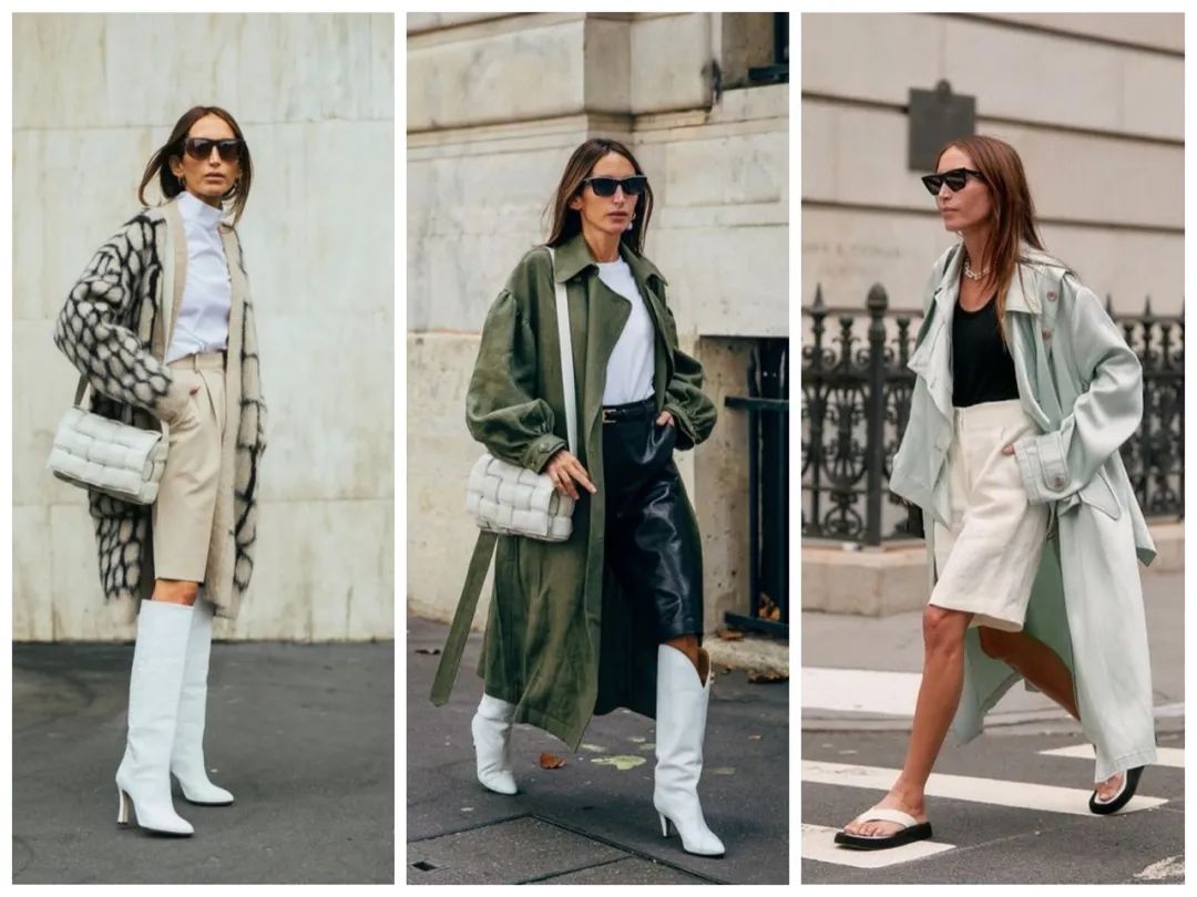根据内搭和鞋子的不同,这个造型呈现出不同的风格,适配不同的场合。