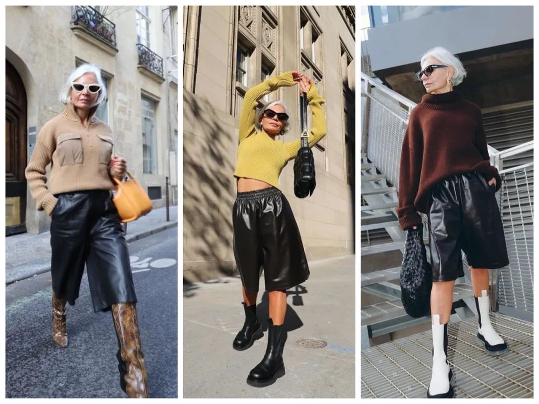 55岁的时尚博主Grece Ghanem,随随便便就在她的IG里找到不下10套五分宽腿裤造型。