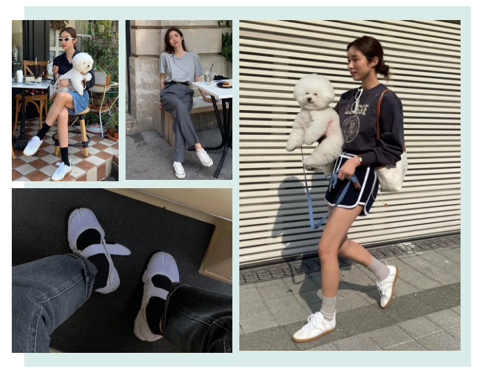 这种有些笨重的鞋款看似跟韩国女生喜欢的少女感不搭,但也恰好是这份不精致,才让她们的少女感看着不矫情 、不腻味。
