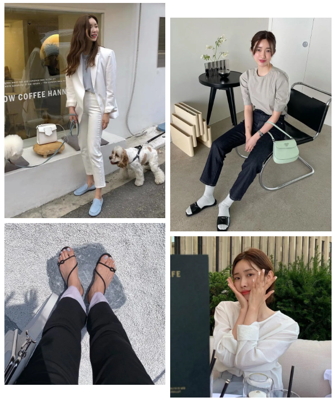 平时能穿平底拖鞋就绝不踩高跟鞋,舒适又方便。被翻牌率最高的,当然是百搭的棕色和黑色: