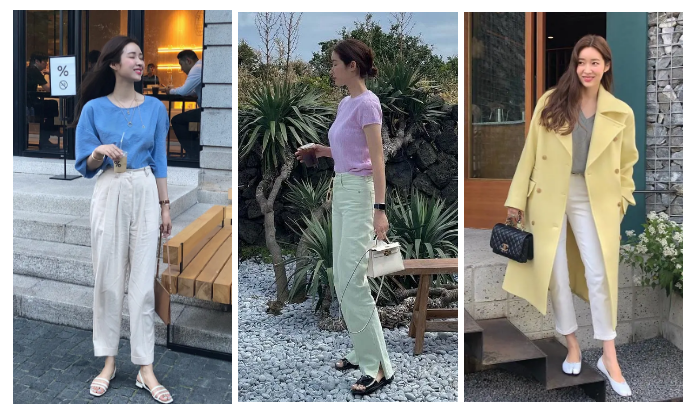 韩国女生虽然也不爱穿大红大绿,但不同于日本女生爱穿的灰蒙蒙,韩国女生会更偏爱高明度的蜡笔色。