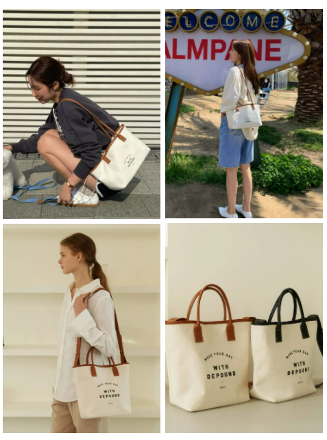 韩国品牌depound的帆布包,出了两个颜色的。车静媛和孙丹菲都选了棕色这款。目测挺能装的。S号官网600出头。