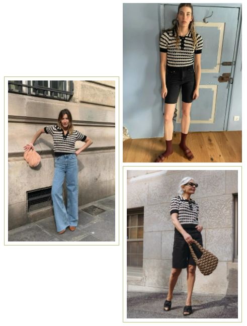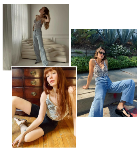 Mango的针织吊带,瑞典博主Pernille Teisbaek、法国创意总监Jen Azoulay都搭了牛仔裤,而Brianna