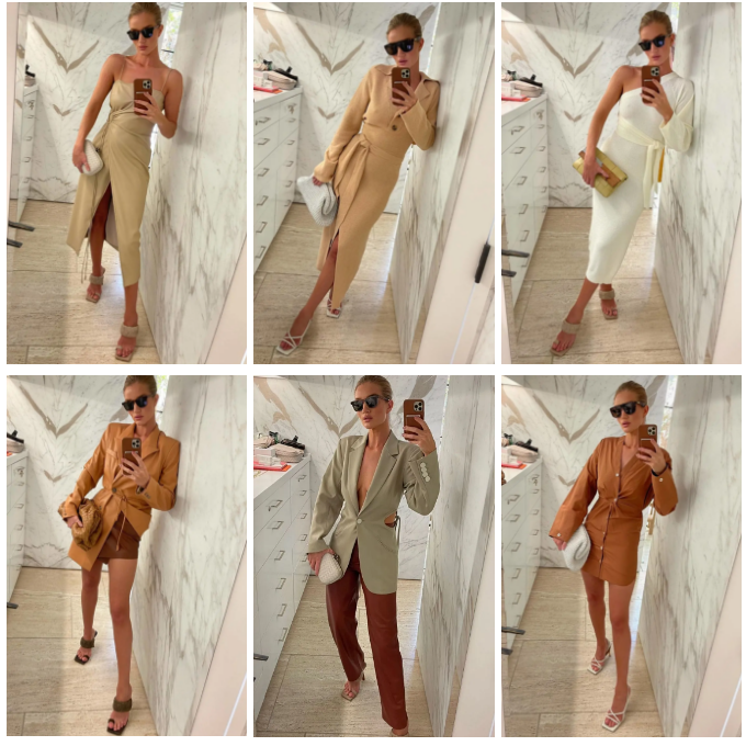 最近很喜欢看Rosie的穿搭,她的衣柜里有好多Nanushka,从长裙、针织半裙、皮衣到皮裤都有。包包则是被BV承包了。真干练女人~